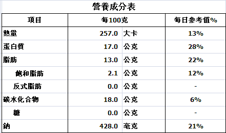 選用新鮮雞腿肉分切至小塊狀後予以加工裹粉,一口一顆的小點心香氣四溢,是老人與小孩的最佳選擇。
